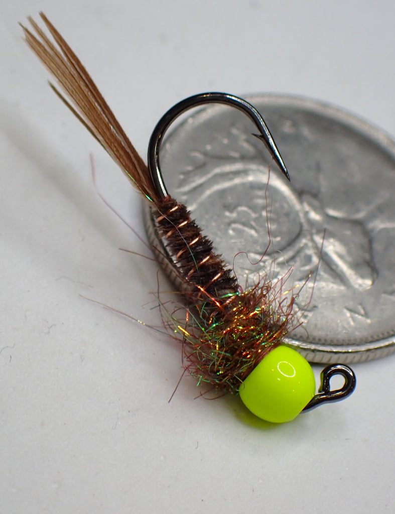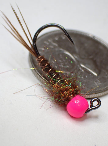 This PTN variant is tied on a sz10 Mustad 32833 with 3.5mm Tungsten bead or 4.7mm brass bead. The turkey feathers used for the body and tail are gathered from local hunters. These flies are of epic status and will catch you trophy trout
