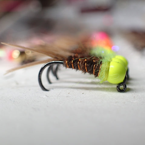 This PTN variant is tied on a sz10 Mustad 32833 with 3.5mm bead. The turkey feathers used for the body and tail are gathered from local hunters. These flies of epic status and will catch you trophy trout